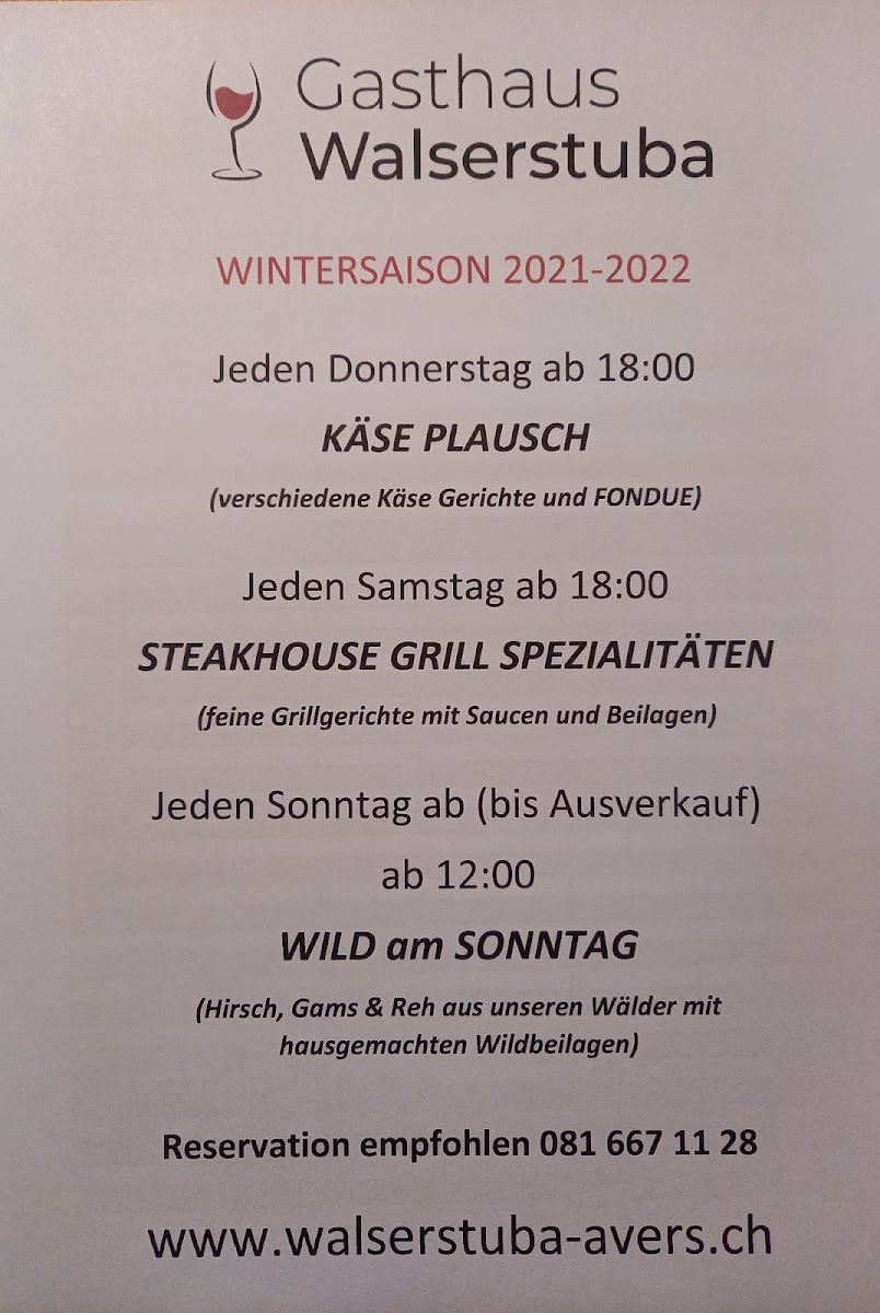 Welcome to Gasthaus Walserstuba, a delightful culinary gem nestled in the breathtaking Avers Valley, Switzerland. Known for its cozy ambiance and exceptionally friendly service from hosts Steffi and Simon, this charming eatery offers an extensive menu that caters to all tastes.